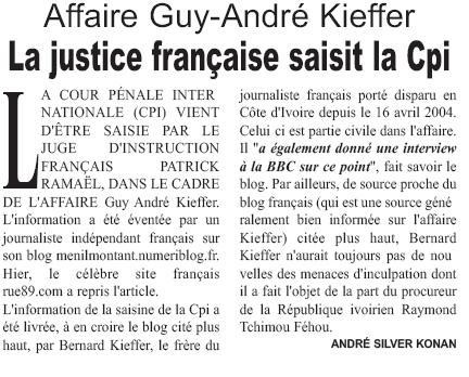 Amèrement, Bernard Kieffer écrit au sujet des autorités françaises et de Laurent Gbagbo : « Il eût donc sans doute été malvenu de l'ennuyer avec ce vil marchandage » et souhaite un « Joyeux Noël tout de même à nos fins négociateurs »… Selon lui, « la question à 200 milliards de francs CFA » aurait dû être de savoir où est passé son frère.