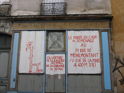 La librairie spécialisée Le Monte-en-l’Air a quitté l’ancienne papeterie de la rue des Panoyaux (photo) pour s’installer dans l’ancienne imprimerie de l’entrée de la rue de la Mare, toujours à Ménilmontant. Et participait ce week-end aux journées portes-ouvertes des Ateliers d’artistes de Belleville (AAB), 21e du nom.