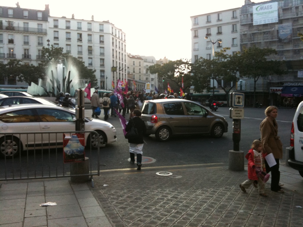 «Argent public pour le service public !», «À l’intérieur, y a trop de travail. À l’extérieur, y a pas de travail. Embauchez les chômeurs !», «Tenon en colère, y en a marre de la galère !» Le 14 octobre, une petite trentaine de manifestants en blouse d’infirmiers et de soignants sont partis de l’hôpital Tenon (c’est ICI) vers la place Gambetta (c’est LA) et ont tourné autour de la fontaine de la place pendant une grande demi-heure.