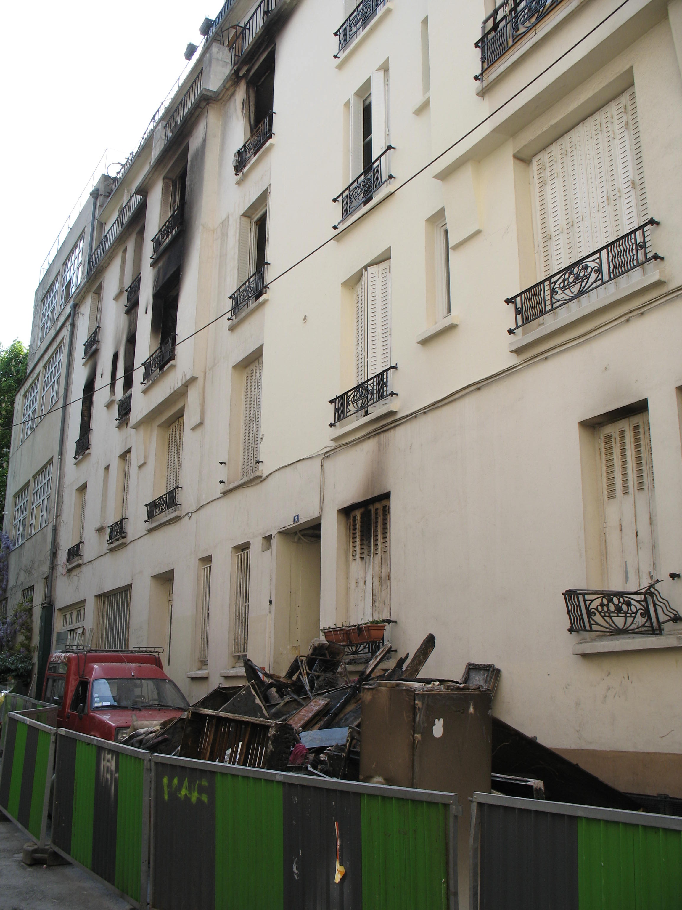 moi j'ai connu " que " l'incendie au deuxième étage il y a qqs années, c'était l'appartement de l'escalier droite, on connaît pas les causes de cet incendie ( pas d'enquête sans morts ... ), l'appartement ( ainsi que la façade et la cage d'escalier droite ont été refaites depuis )