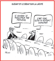 Dans Le Canard du 6 avril, un dessin de Pétillon résume la bouderie six principales religions au «débat» de l’UMP sur la «laïcité»: si le nombre de musulmans pose problème à Claude Guéant, c’est que les organisateurs en espéraient davantage, en vue des échéances présidentielles de 2012. Faut pas se voiler la face: l'attitude —plutôt orthodoxe— des religieux dans leur ensemble n'a pas facilité la tâche des pro-débat, soutenus par seulement 54% des sympathisants UMP et 23% de la population, à moins d'un mois du déplacement du président Sarkozy au Vatican.