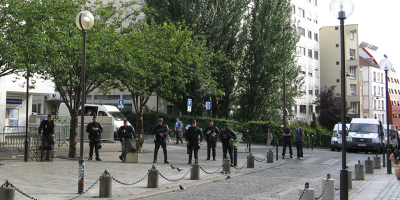 Un imposant dispositif policier avait été déployé, tant devant le gymnase que dans la rue de la Fontaine-au-Roi (où une dizaine de véhicules stationnaient en file indienne), dans deux rues adjacentes, et sur le boulevard de Belleville.