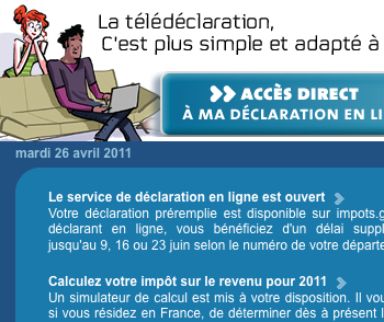 En 2010 (sur les revenus de 2009), près de 10,5 millions de déclarations ont été réalisées en ligne, selon le ministre, qui a précisé que «Cette année, les améliorations portent sur une saisie simplifiée et une offre de service plus complète: pré-affichage des informations littérales télédéclarées l’année précédente (nom et prénom des enfants mineurs, détail des frais, etc.); possibilité de gérer ses modalités de paiement à l’issue de la déclaration en ligne (modulation en ligne de ses mensualités par exemple).»